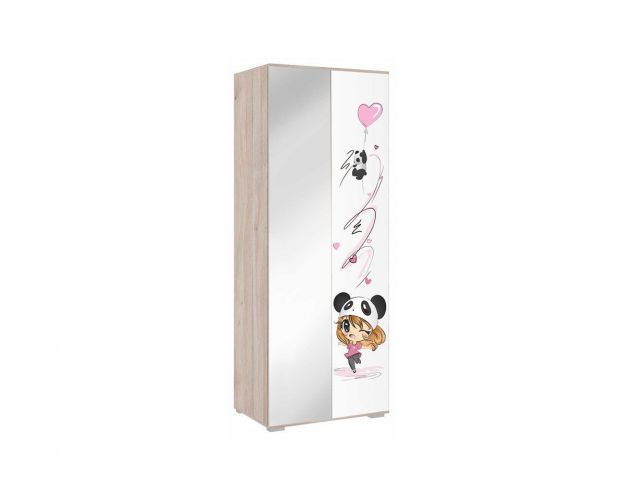 Стильный и модный шкаф «Панда». В шкафу штанга и съемные полки, позволят разместить всю вашу одежду. Модный и стильный рисунок на фасаде, придаст индивидуальность детской комнате, а тактильно приятные ручки-сердечки, очаруют каждую девочку. Принтерный рисунок устойчив к истиранию и ультрафиолету. Большое зеркало на двери визуально увеличит пространство в вашей комнате и в него можно смотреться в полный рост.
