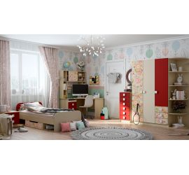 Цвет: корпус Клен, фасад Бежевый/Красный