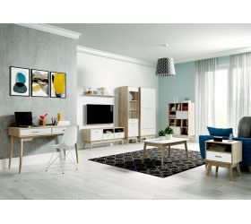 Стол журнальный Калгари Дуб натуральный светлый/Белый матовый