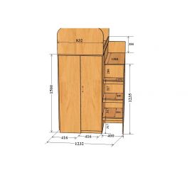Размеры: высота 2000мм, ширина 2332 мм, глубина 832 мм