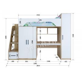 [name] => Кровать-чердак Кадет-2 угловая Дуб молочный/Дуб молочный