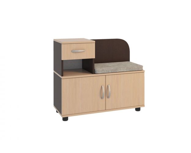 Тумба оборудована выдвижным ящиком для разнообразных мелочей, открытой нишей для перчаток или гостевых тапочек и шкафчиком для обуви со внутренней полочкой. Кроме того, на ней удобно сидеть благодаря мягкой подушке, которая идет в комплекте.