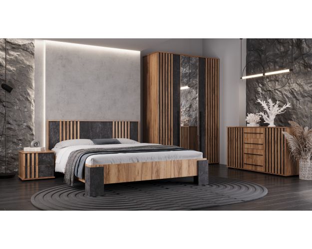 Шкаф 3х ств. 1500 Марракеш от спального гарнитура Марракеш - выполнен в стиле лофт, который в последнее время все больше пользуется популярностью. Модули этого набора мебели подобранные по Вашему желанию, помогут создать неповторимую обстановку в спальной комнате. Гармоничное сочетание цветов «Дуб вотан» и «Цемент тёмный» создают атмосферу уюта.